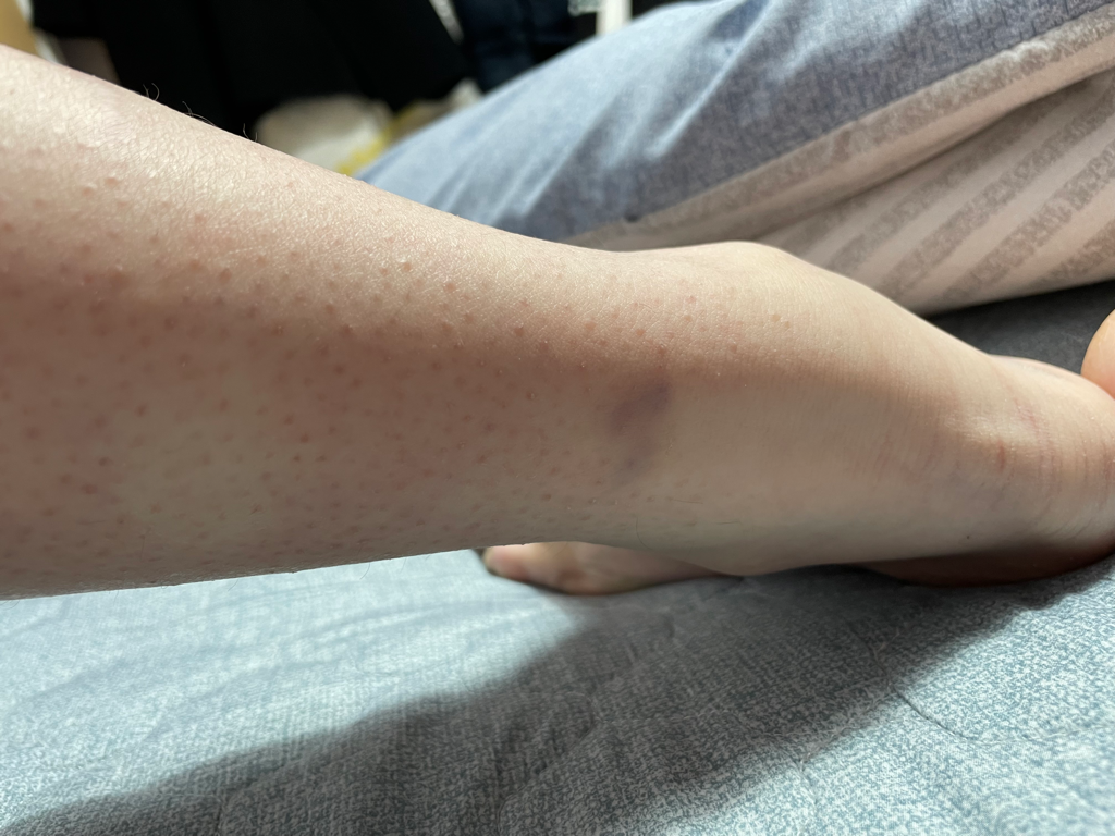 근육 경련?이 심하게 생겼던 그 후로 갑자기 왼쪽 다리에 아킬레스건 부근과 무릎과 다리 한 쪽에서 멍이 생겼어요.
