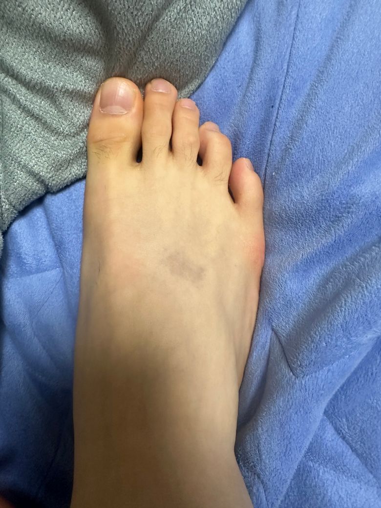 2주전 갑자기 이런 회색, 검은색 반점이 발등에 생겼습니다. 가려움증이나 튀어나오는 등의 다른 증상은 없고 2주 지났는데도 그대로네요.. 흑색종 같은 종류의 초기 증상일까요?