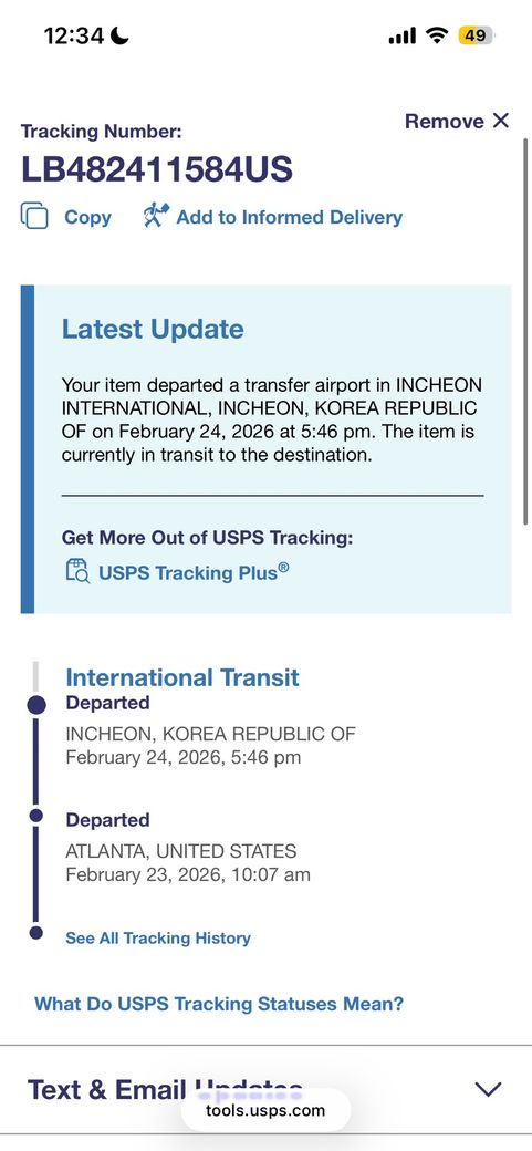 배송사는 USPS인데 2월 24일 이후로 배송조회가 멈췄습니다 혹시 분실된건 아닌지 걱정됩니다