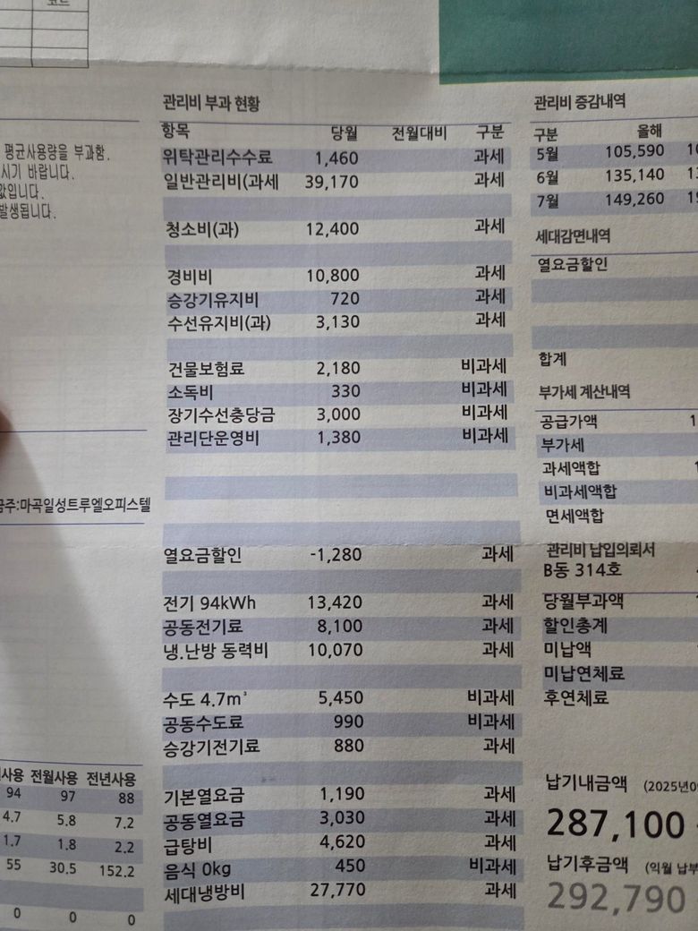 하기 항목중 월세계약 만료시 돌려받아야할 관리비 항목은 어떤 것들인가요?