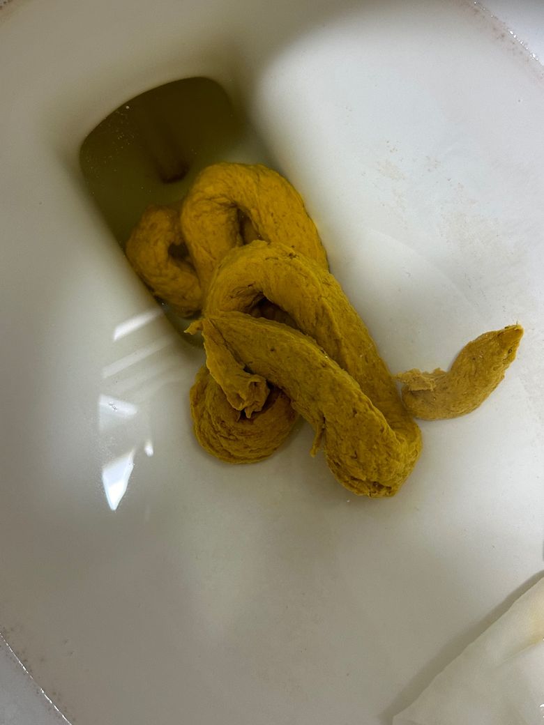 대장내시경전 흰쌀죽 바나나 감자 삶은 계란만 먹었는데 변이 노란색으로 나와요 이상있는지 확인 부탁드립니다