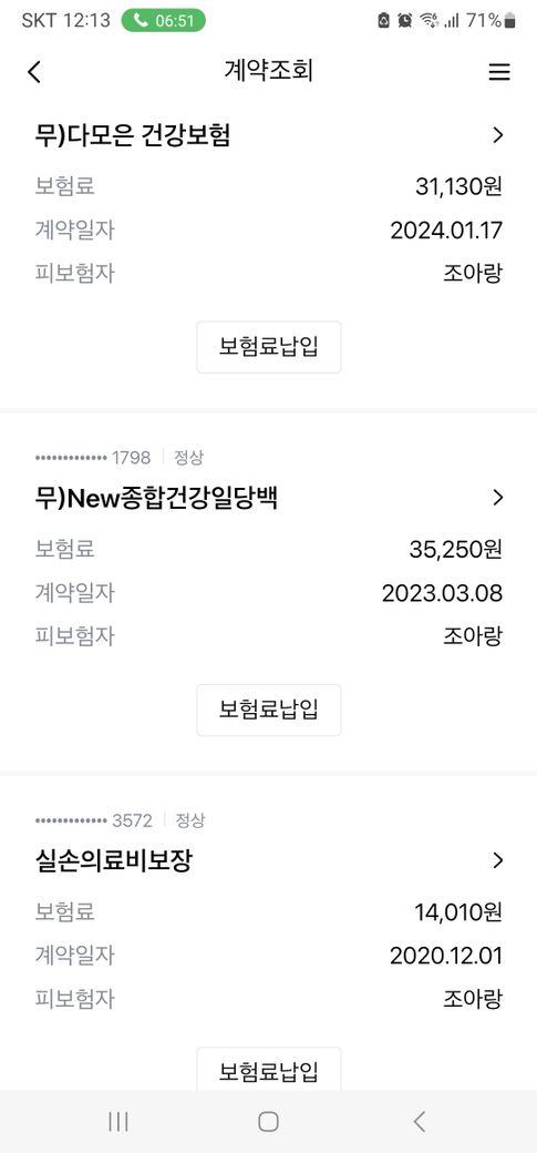 3만원대의 보험료는 가입금액이 크지 않을 것으로,