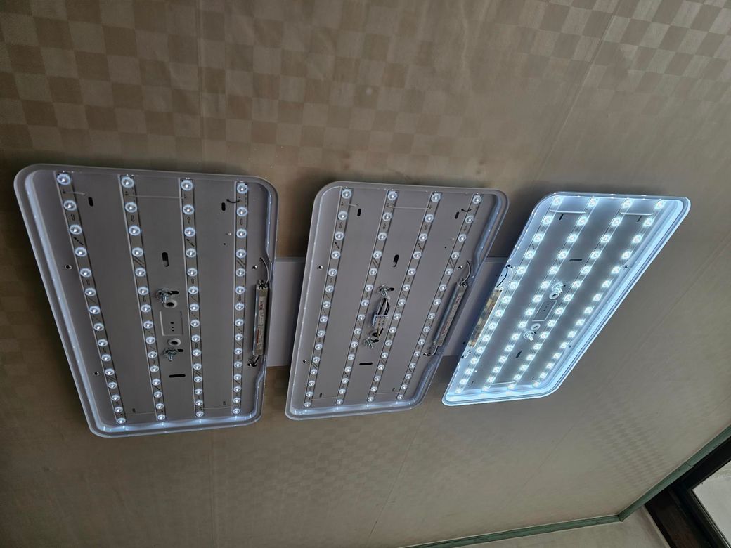 흰색선 +이 모듈 전체에 고르게 분배되지 않고, 한쪽만 연결되 상태일 가능성이 있습니다. 처음에 흰선3개를 가운데에 넣었을때 양쪽만 켜지고 가운데가 안켜진건 가운데 모듈의 전원선이 빠져 잇거나 접촉 불량일수도 있어요. 지금처럼 2개 2개 2개로 나눴을때 한쪽만 켜지는건 스위치에서 들어오는 주 전원이 특정 모듈만 먹고 잇기 떄문일겁니다. LED 모듈마다 +랑 GND가 정확히 연결되어야합니다. 흰선은 모두 하나로 묶어 스위치에서 오는 +에 연결하고 검은선은 모두 하나로 묶어 GEN에 연결해야합니다. 사진속 흰색 커넥터에 +, GED표시가 잇는데, 이 부분이 헐겁거나 잘못 꽂히면 일부 모듈만 켜질 수 잇습니다. 거실등은 보통 2구 스위치구조 가 많아요. 사장님 말씀처럼 한번에 전체 켜기를 원하신다면 모든 흰선을 하나로 묶어 스위치 한쪽에 연결해야합니다. 전기 작업은 반드시 차단기를 내리고 작업하는게 필수입니다.