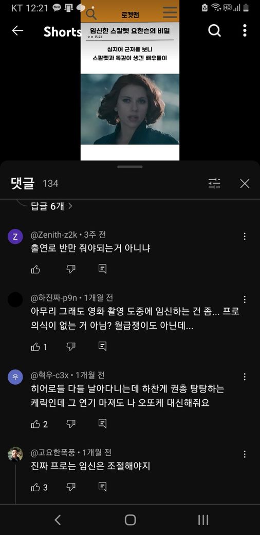 최근 유튜브 쇼츠를 보다 댓글창에 이런 댓글이 정말 많은 걸 보고 '스턴트가 필요한 영화를 촬영하는 도중에 임신을 하는게 정말 프로의식이 없는 행동일까?' 하는 의문이 들더라고요.