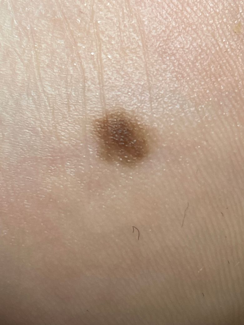 올해 중순에 점을 발견했는데, 모양도 조금 이상한 것 같고 안에 색도 진한 갈색, 연한 갈색이 있어서 흑색종인지 한번 봐주시면 감사하겠습니다.