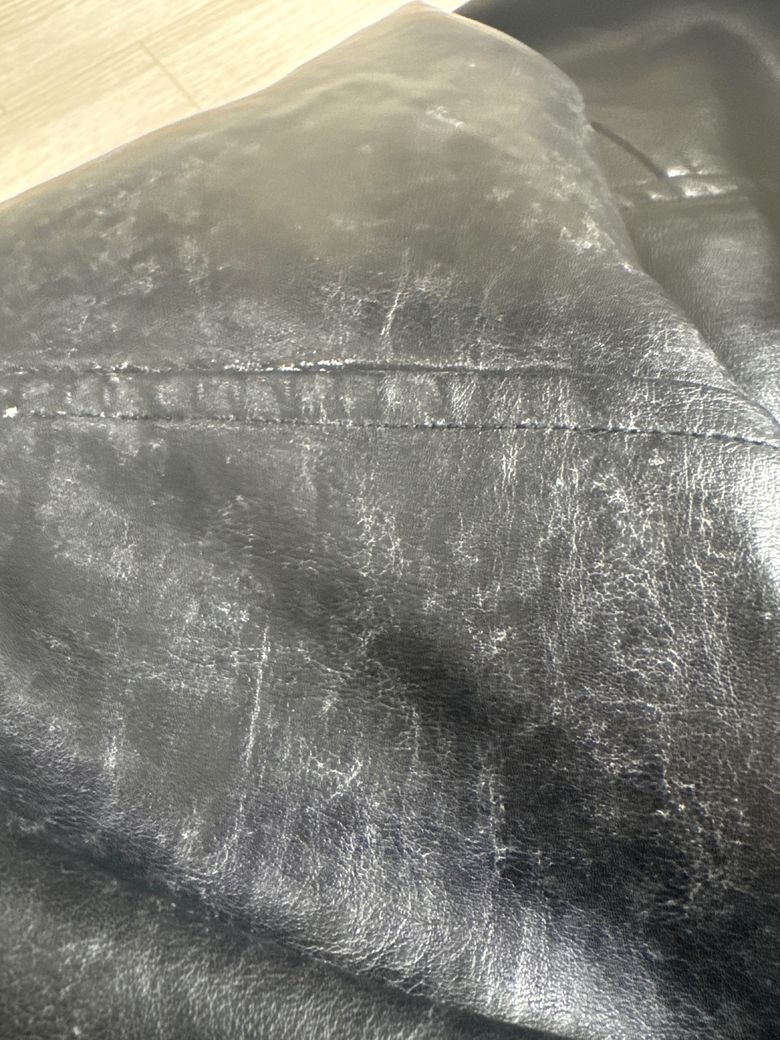 가죽자켓의 화장품 얼룩과 크리너로 인한 흰색 얼룩은 전문 가죽클리닝이 필요해 보입니다