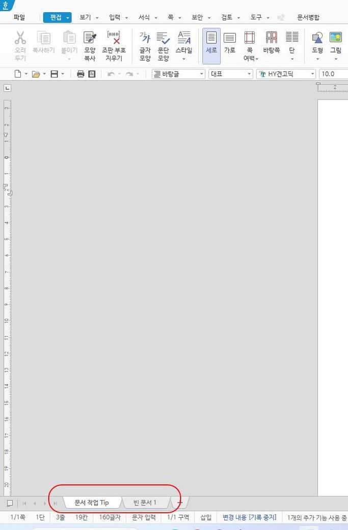 한글도 보니까 밑에 새 탭을 만들수 있는데 하나의 한글파일에 여러탭을 만들 수 있나요?