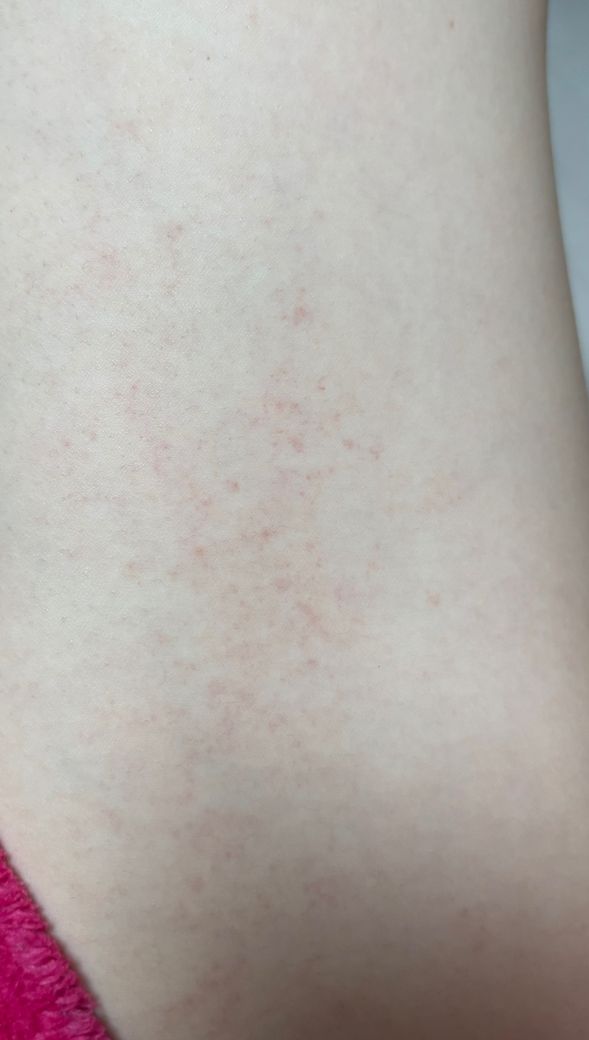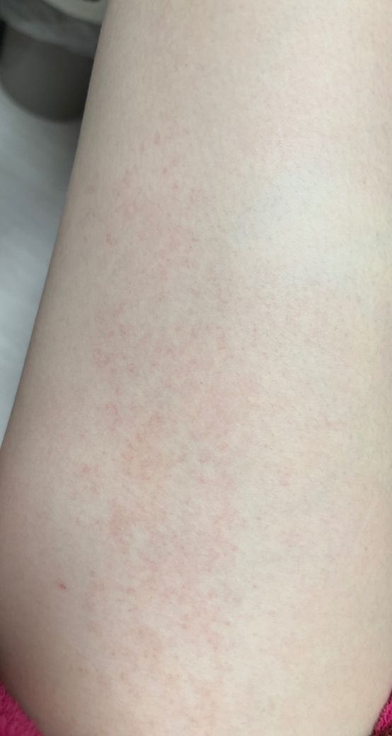허벅지에 몇 주간 이런게 생겼어요 오돌토돌하진않고 간지럽지도 않고 그래염