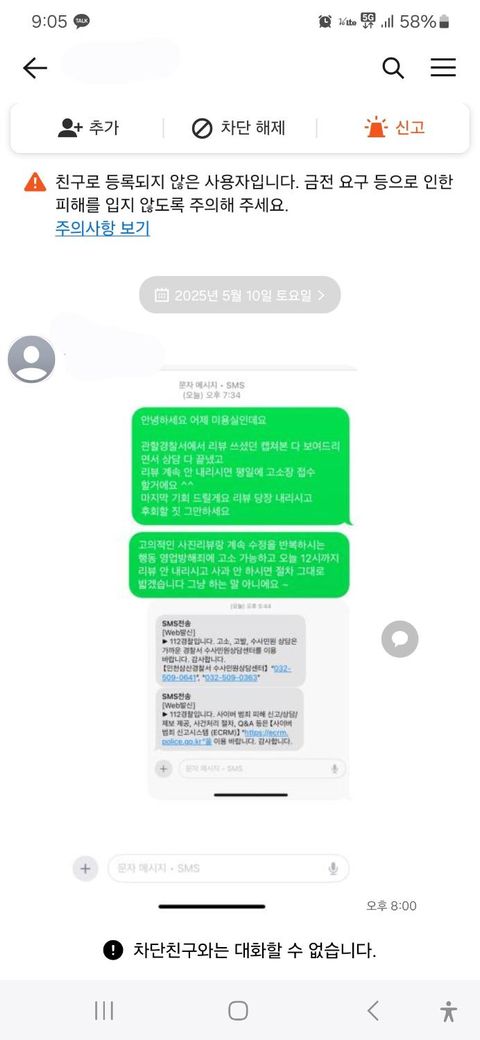 통화와 고소 협박을 받았습니다.