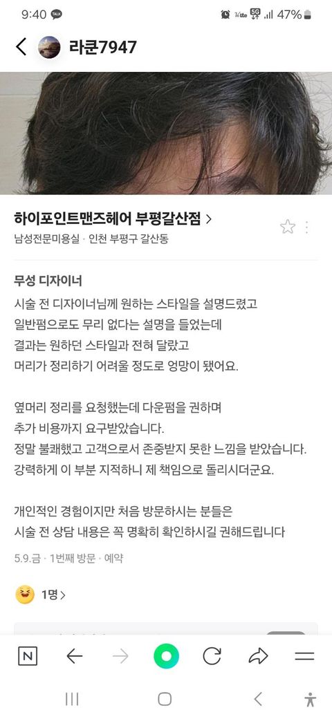안녕하세요 최근 남성전문 미용실에서