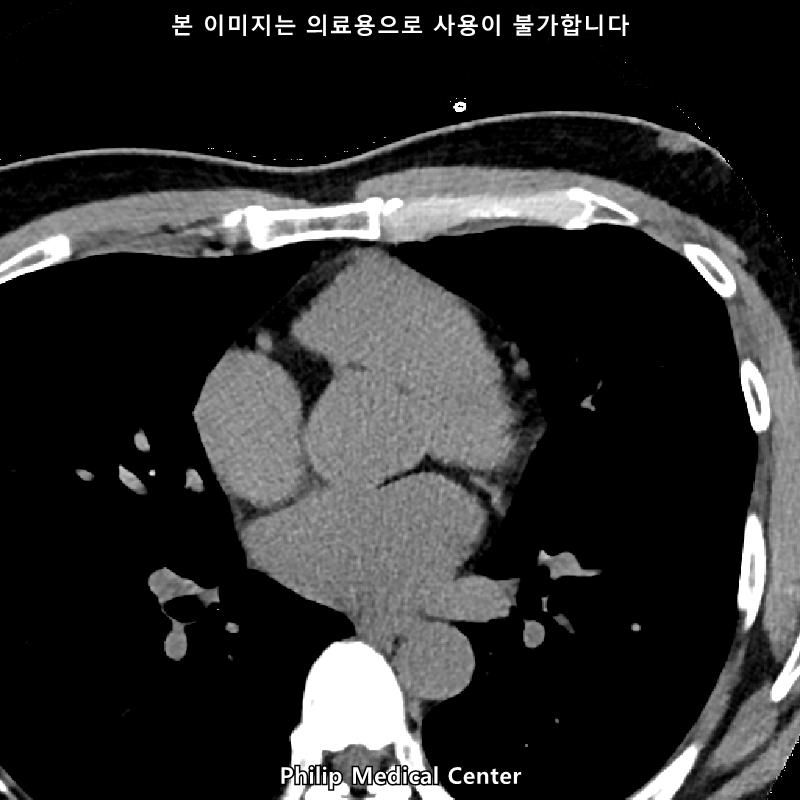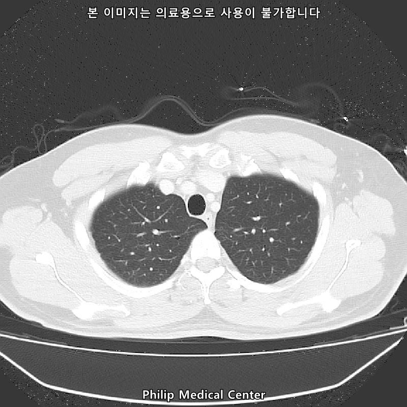 (우측 폐첨부에 경미한 섬유성변화와 우중엽에 약 3mm크기의 결절)