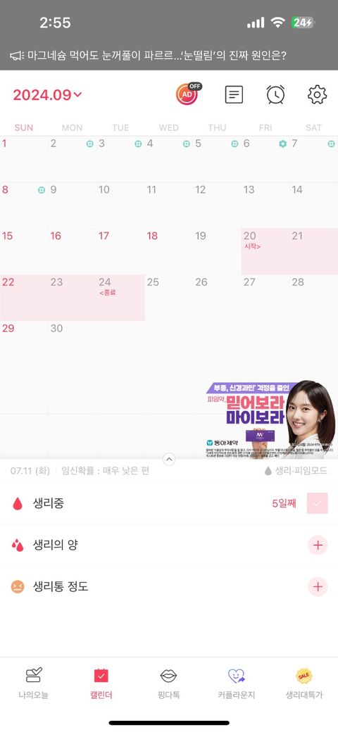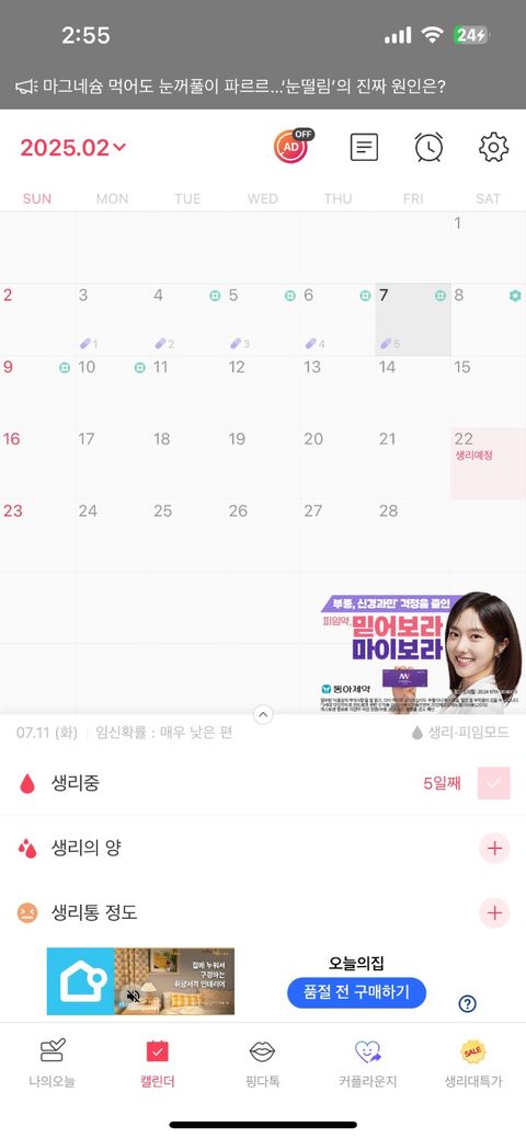 생리 미루기 실패로 월경 5일하고