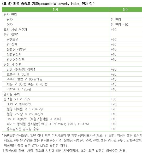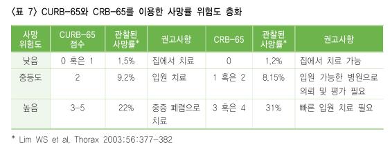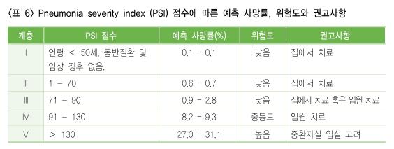 폐렴환자중 일부에서 입원치료를 하게 되는데 아래 자료처럼 증상이나 검사결과를 보고 담당의료진이 정하게 됩니다.