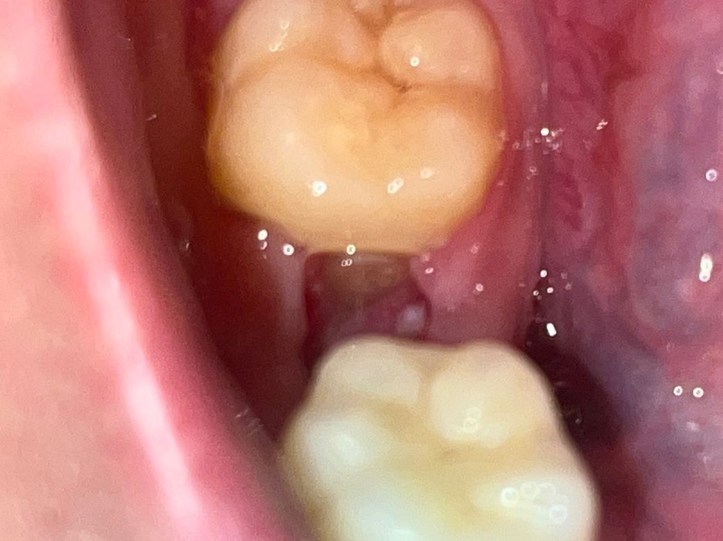 살이 차오르지 않는데 이보다 더 무서운게 사랑니쪽 뿌리? 치근? 치경부가 보이는 것 같아요. 구멍애 흰? 노란부분이요. 이게 사랑니가 보이는게 맞나요? 원래 이런건가요 너무 무서워요