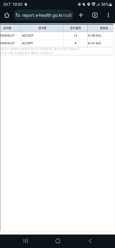 사진으로 첨부하신 간수치는 모두 정상입니다. 두 수치는 간세포가 파괴될 때 상승하는 수치입니다.