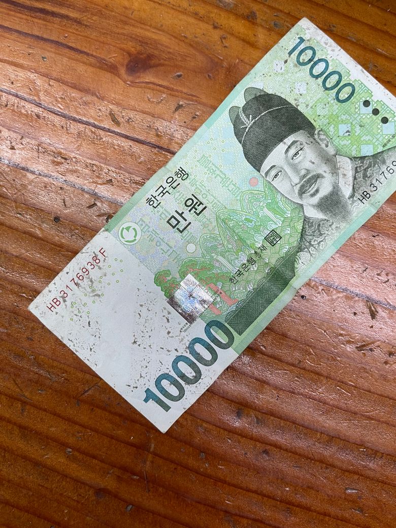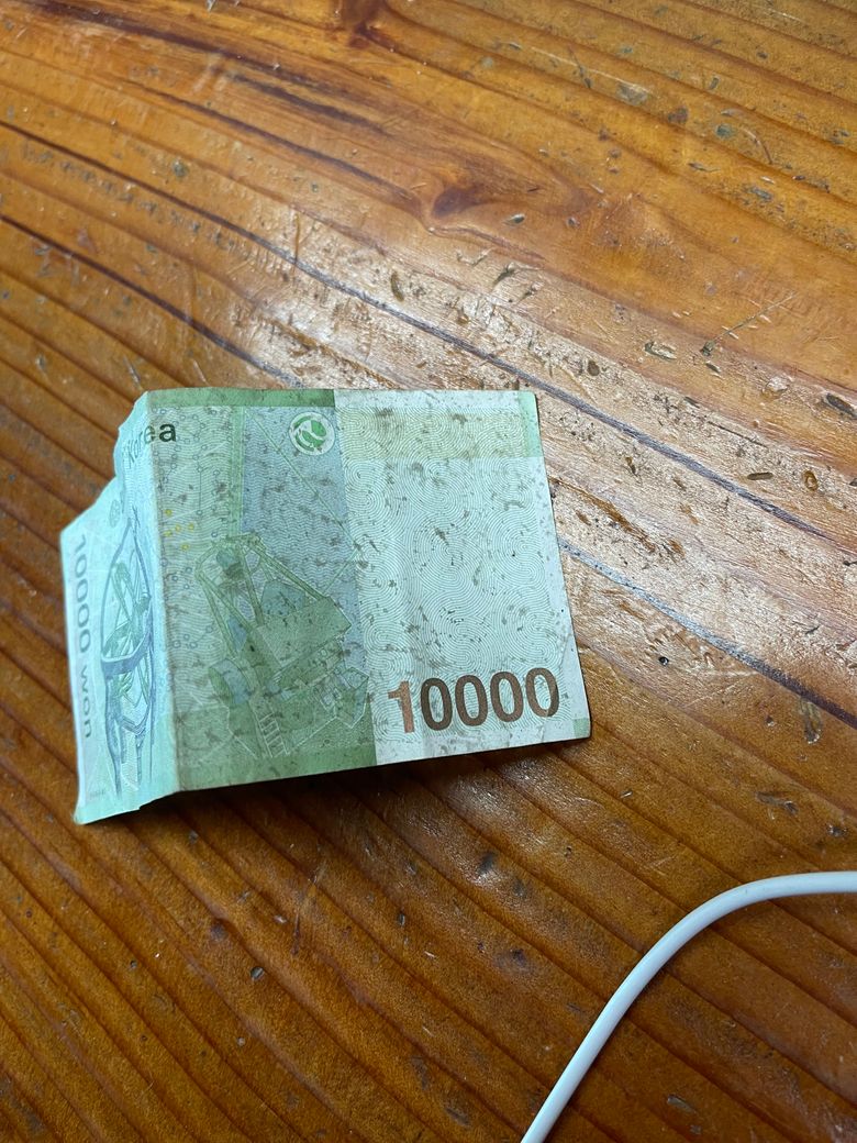 10000원권 지폐를 가방 앞주머니에 넣어놓고 2개월정도 지난것 같은데 오늘 꺼내보니 돈에 검정색 먼지같은것이 뭍어있어요 변색된건가요? 원인이 무엇인지 궁금합니다 가방안에는 버스를 타면 주는 영수증과 코팅된 비닐로 포장된 비타민이 같이 들어있었습니다