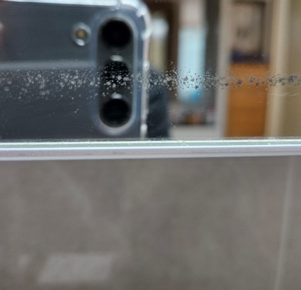 제 생각에는 물때나 그런게 아니라 거울의 표면이 일어나서 그런거 같아요.