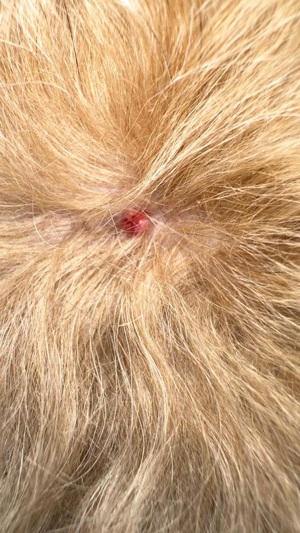 강아지 붉은 반점이 났어요! 너무 아파해요