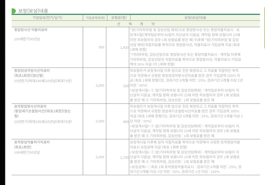 암을 대비하는 서브 개념으로는 항암양성자방사선치료비, 표적항함 넣어주셔도 되는데