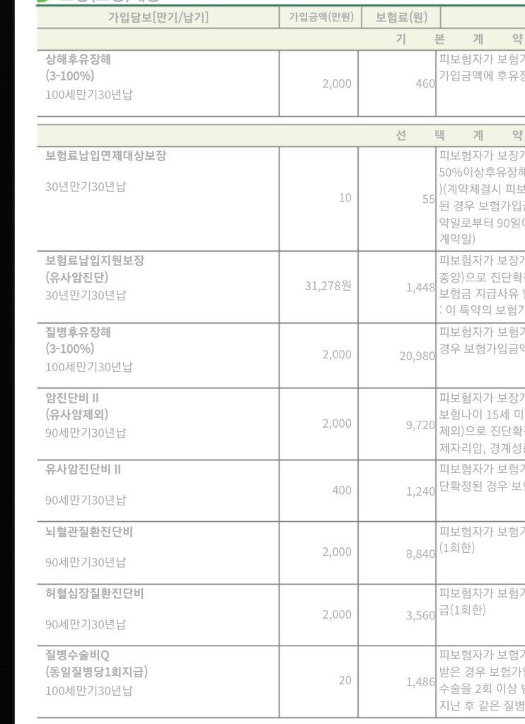 뺄만한 담보들은 없고 진단비 들이 너무 낮긴 합니다 30년납인게 쪼금 걸리네요!
