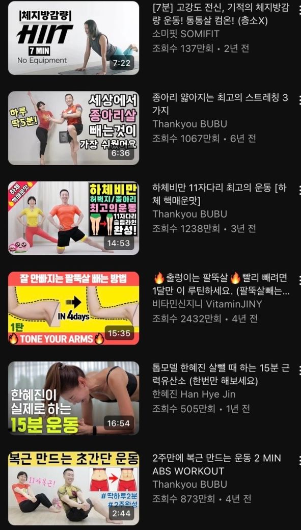 홈트 최소 3개씩/많이 하면 6개씩(밑에 사진 있는데 봐주세요)