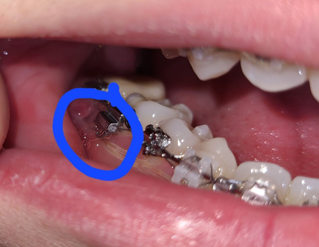 현재 상황으로 보아서는 브라켓에 의해서 잇몸이 아픈 것으로 보이며 상당한 잇몸 통증이 있을 것으로 보입니다. 이때는 치과 방문 주기에 맞춰 방문하지 마시고 오늘이라도 방문하셔서 해당 부위의 브라켓 방향을 개선하거나 다른 브라켓으로 바꾸는 것이 필요해보입니다. 빠른 치과 방문이 필요해보입니다.