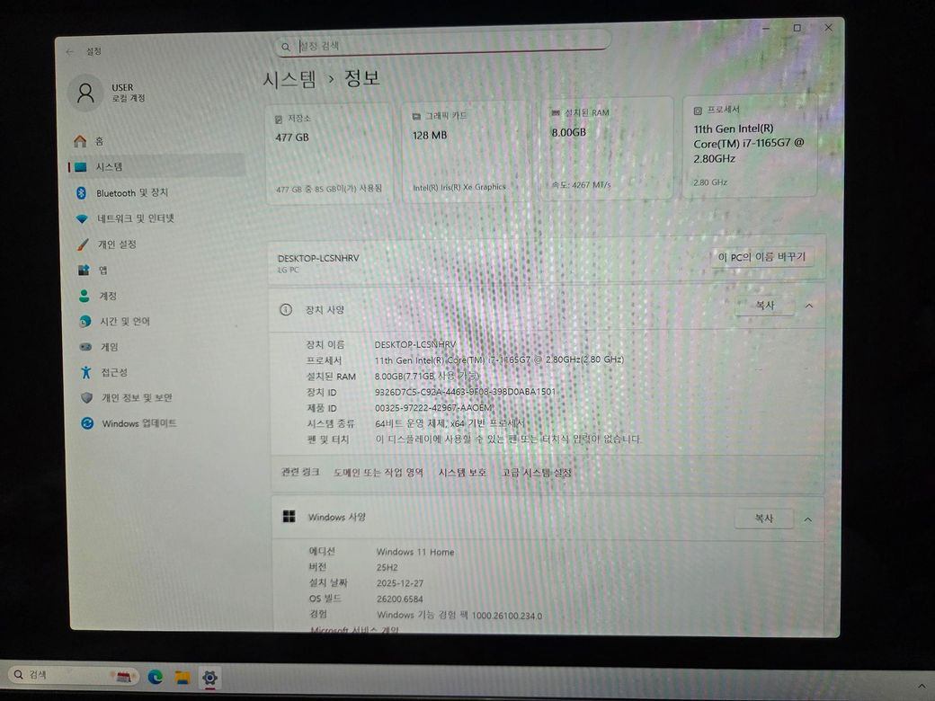 설정에서 시스템, 정보 들어가도