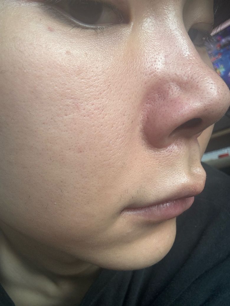 콧대를 어쩌다보니.. 세게 짓누르듯 여러번 마사지를 한거같아요.. 사진상 왼쪽 얼굴