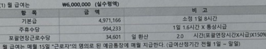 매달 250만원 정도 차이, 또한 주휴 수당 미일치