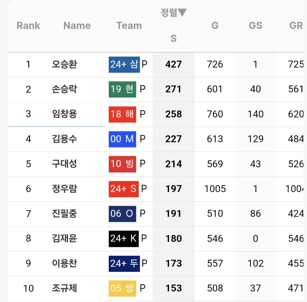 선수생활 중간에 7시즌을 해외리그에 다녀오고도 통산세이브 2위선수와 압도적인 차이로 1위이니까요.