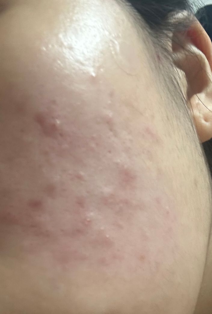 원래 볼에 여드름이 있긴했지만 최근에 관리 잘 해주고나서 많이 가라앉고 흔적도 많이 없어진 상태였는데 갑자기 이렇게 두드러기식으로 볼에 엄청 올라왔구 가렵더라구요..