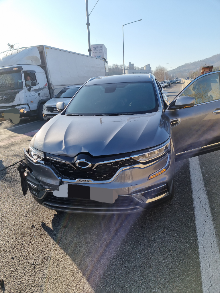 충격에 앞유리파손도 있었고 휀다가 밀려서 문이 안열려