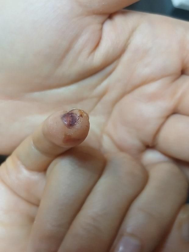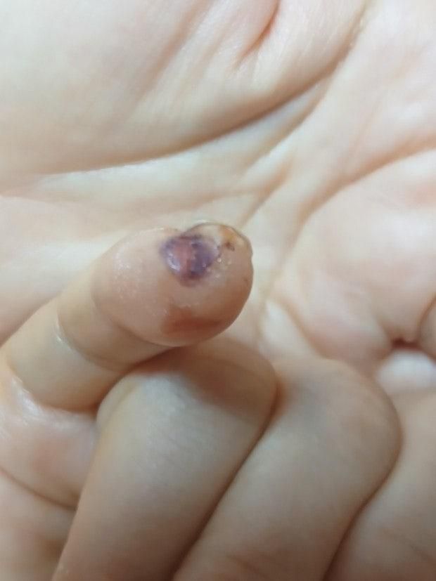 손가락 꿰맨곳 정상적으로 회복 중인 과정인건지 확인 부탁드립니다
