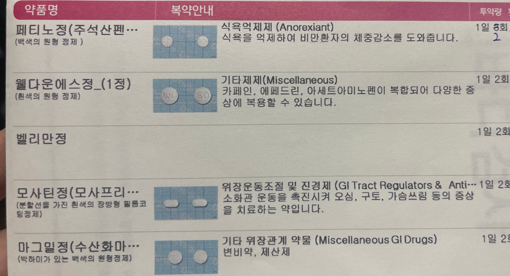 현재 센스데이 복용중이고 제가 처방받은 다이어트 약의 목록입니다.