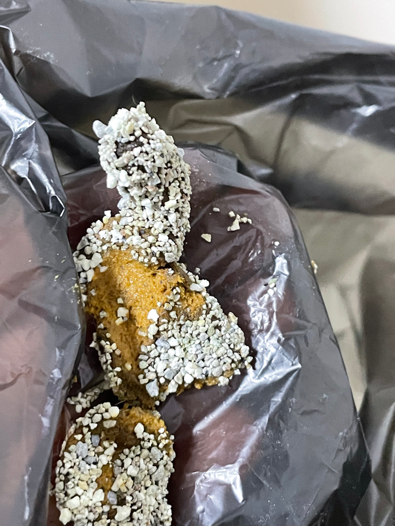 황금색으로 매우 좋은 변 색을 보이고 있다고 보입니다. 외견은 그렇고 내부는 현미경으로 봐야 하니 설사 양상이나 다른 증상이 있다면 동물병원에 데려가서 진료 받으시기 바랍니다.