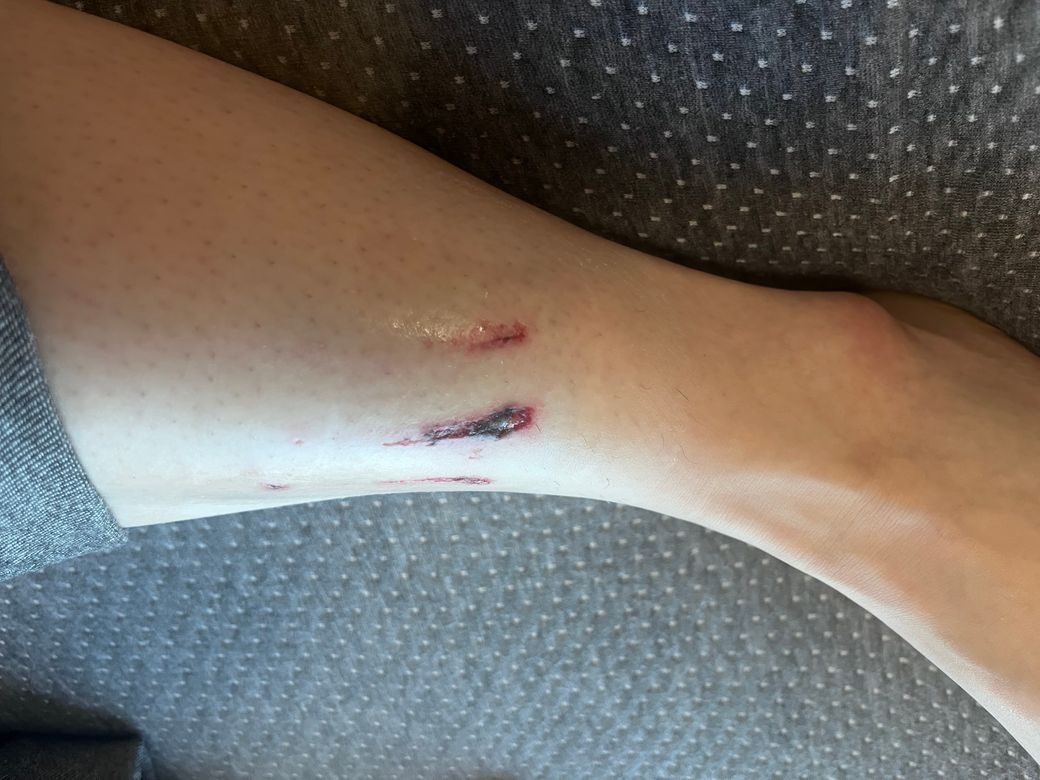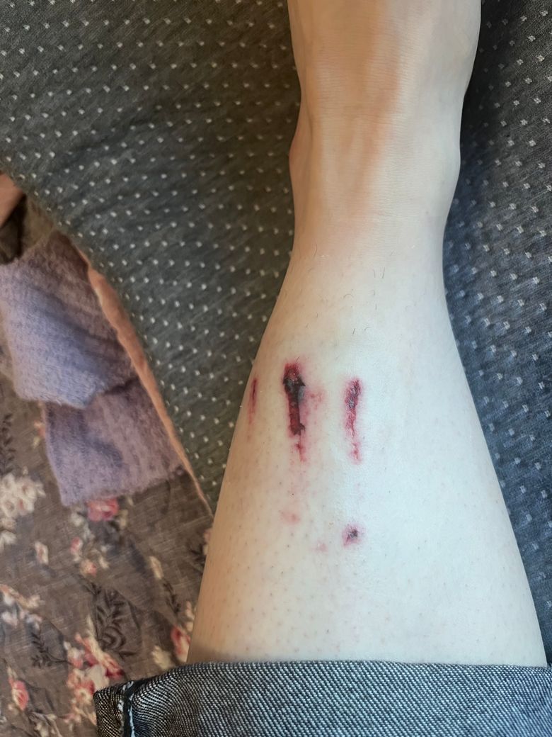 바지입은 상태에서 에스컬레이터 날에 찍혀서 살이 조금 벗겨졌습니다. 외부 물질이 들어오진 않은 것 같은데 살이 검게 변한 것 같습니다.