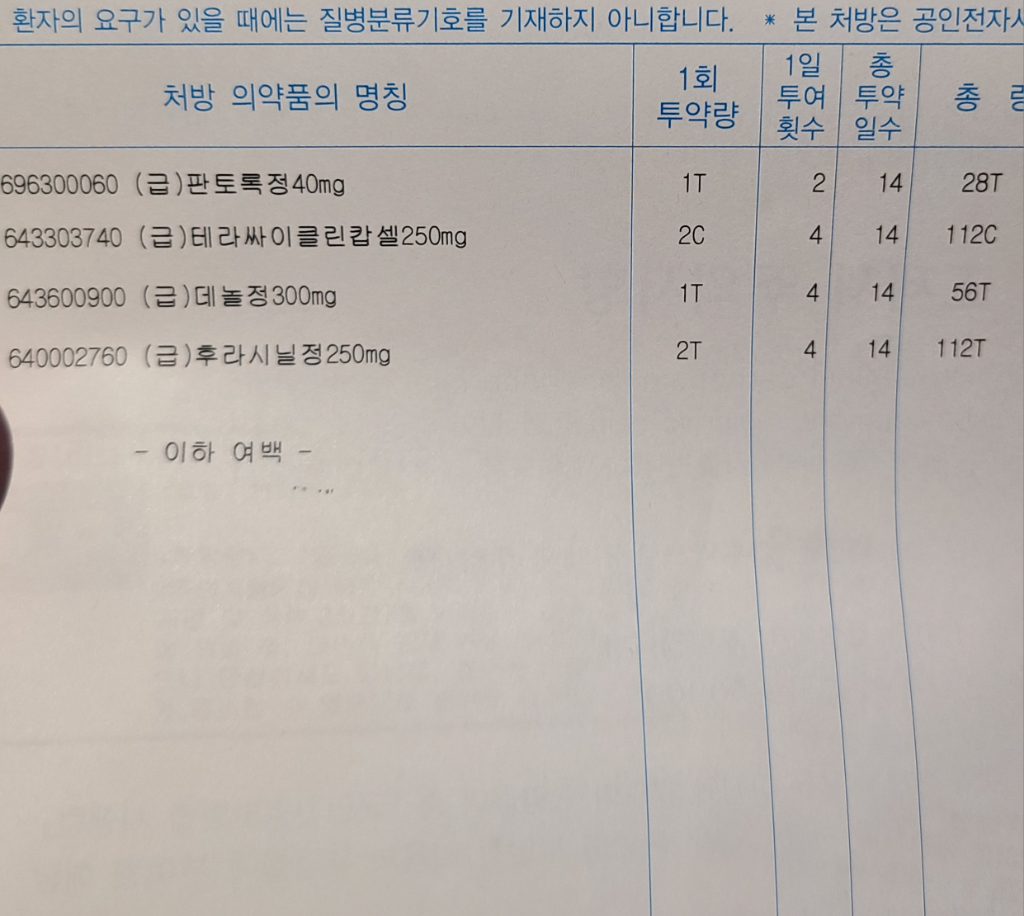 ===>보통 후라시닐정은 자기전에 안드시는게 일반적인데 1일 4회로 나온 부분은 일반적인 헬리코박터 제균요법에 비해 한번더 드시게 나왔습니다.(보통은 1일 3회)