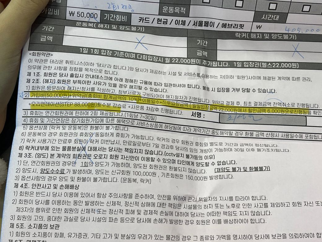 헬스장 6개월 가입한지 일주일조금 지났고 환불 하고싶은데 가입비도 빠지는게 정상인가요ⵈ? 총 40만원 결제했는데