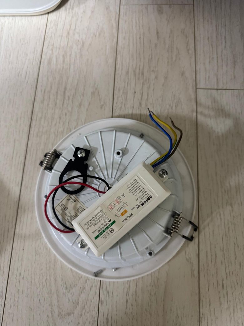접지 무시하고 +-만 꽂아넣으니 불은 들어오는데 계속 깜빡깜빡만 거리더라구요. 교체하려는 다운라이트 옆에 또 하나의 다운라이트도 있는데 같이 깜빡깜빡 거렸습니다. 그런거보면 새로 뭔가 연결되어있는 거 같은데 선 연결방식은 기존에 교체하려고 했던 다운라이트랑 다르게 되어 있더라구요. (선이 3개)