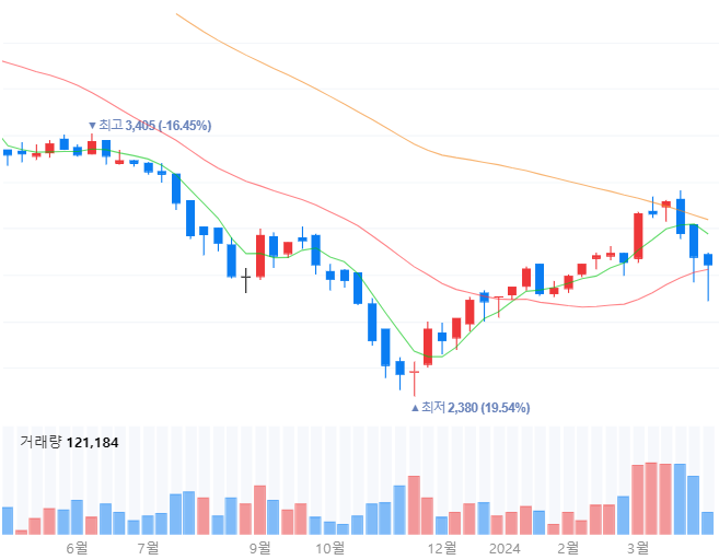 주식 차트 보는 법좀 알려 주세요~~ 색상별로 무엇을 의미하는 모르겠어요