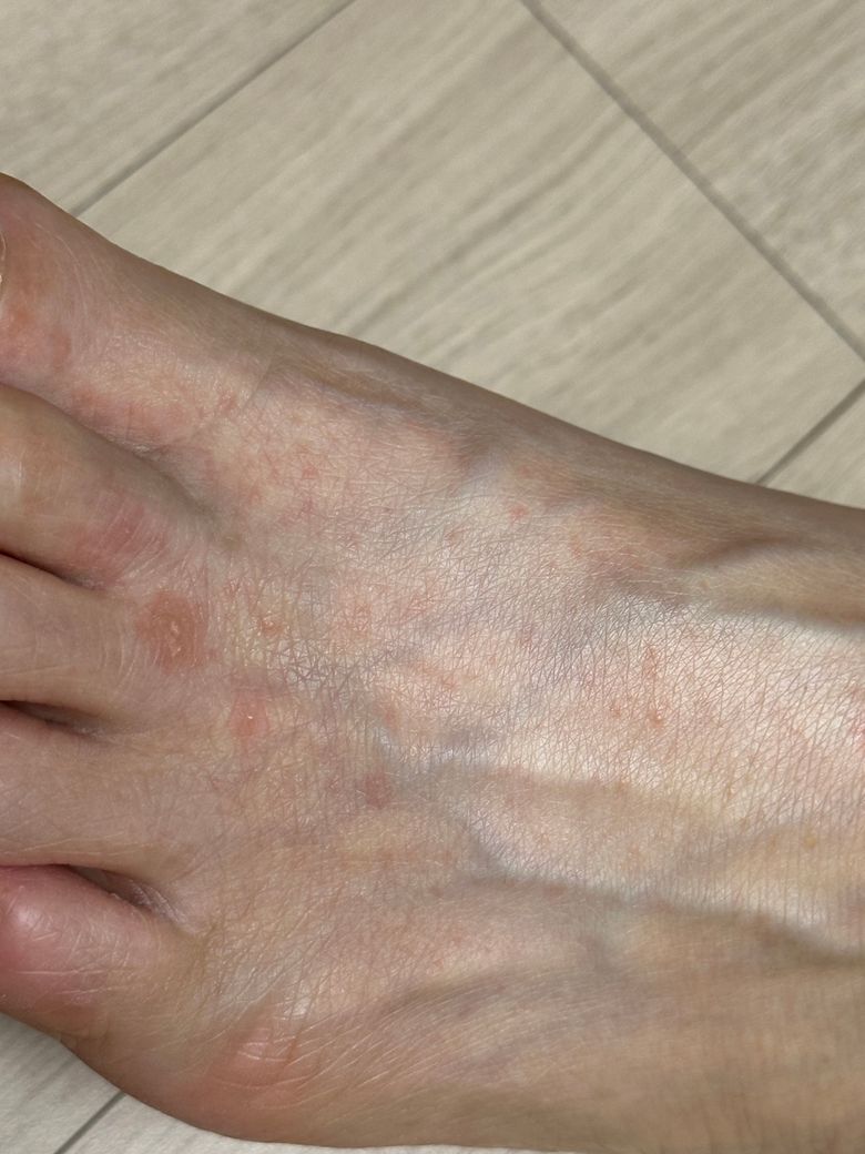 왼쪽 발등에만 약간의 수포 + 빨갛게 동글동글해요.증상은 간지럽기만 한데 대상포진일까요? 대상포진 주사는 맞았어요