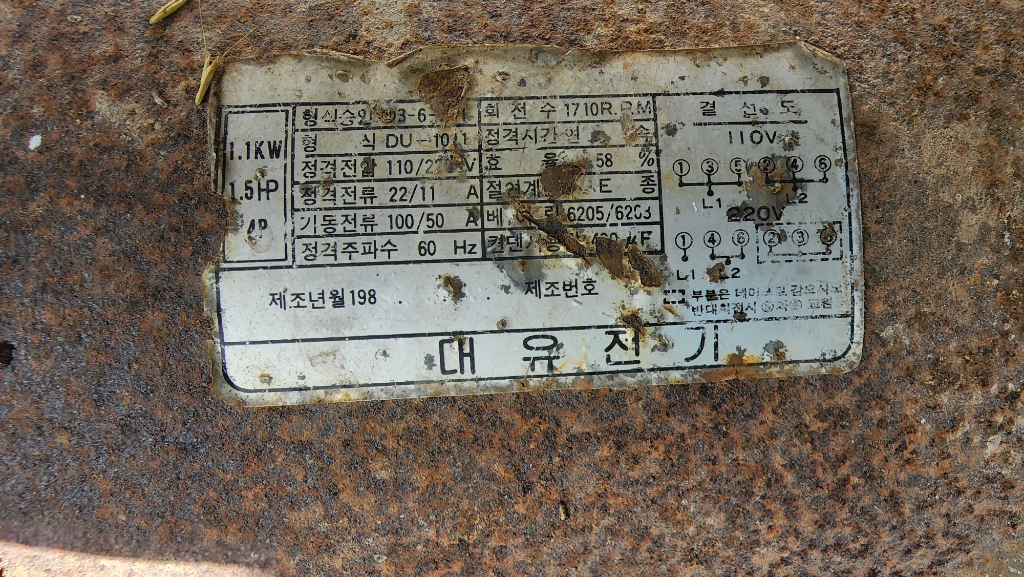 220V면 단상이라 2선과 접지선만 연결하면 배선은 아무이상 없는거구요 웅거린다는것은 배선연견은 제대로 된것같고 모터가 오래사용 하지 않아서 베아링 쪽에 문제가 있는거 아닌가싶습니다