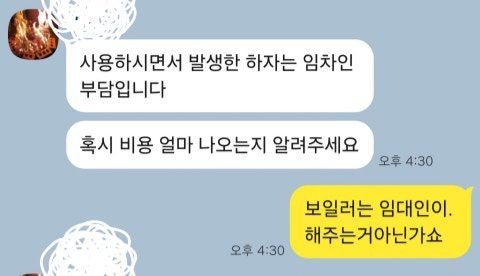보일러의 경우 그 내구 연한이나 내구성을 고려하면 임대인이 그 비용을 부담한다고 보여지고 임차인이 고의 또는 과실로 인하여 파손시킨 것이 아니라면 임차인 책임이라고 보긴 어렵습니다