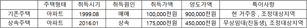 기존주택을 보유하고 있었는데 상속으로 인해서 2주택이 되있습니다. 아래와 같은 현황인데