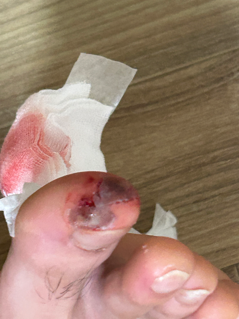 자전거를 타다 발가락을 다치셨군요.