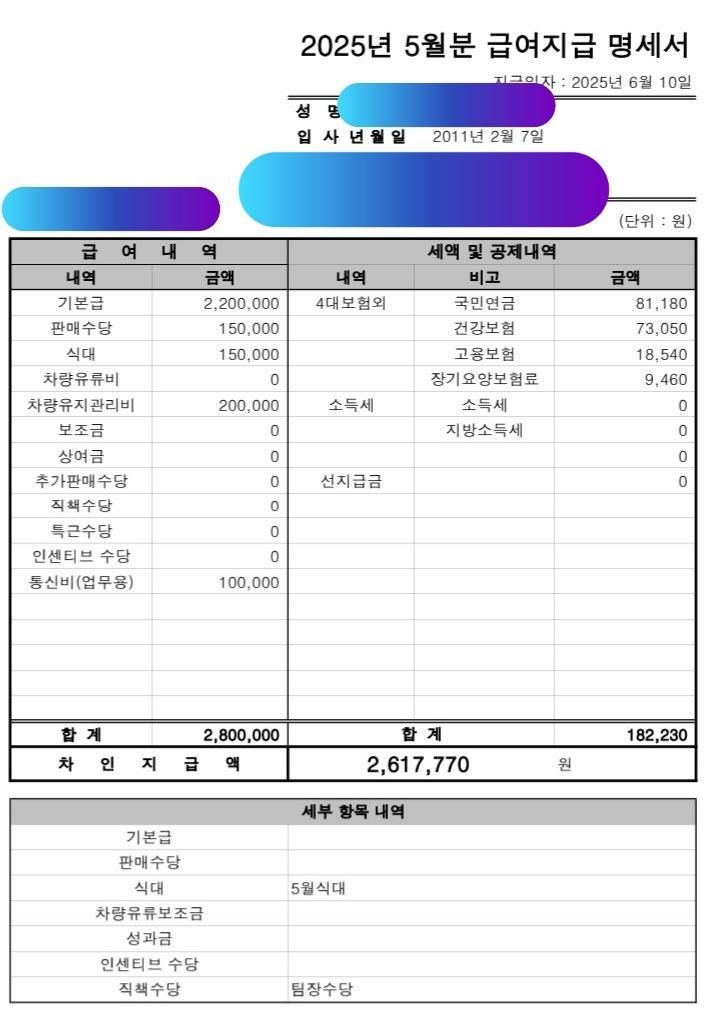 첨부파일에 식대 주유비 등 항목은 사장이 임의로 만들었고,