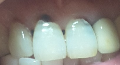 사진으로만 봤을 경우에는 치아의 뿌리 쪽에 충치가 생긴 것으로 보입니다. 충치를 제거하고 치과용 재료로 충전을 하는 것이 좋습니다. 충치의 범위가 넓다면 보철 치료가 필요할 수 있기 때문에 치과에서 진료를 받아보는 것을 권유드립니다