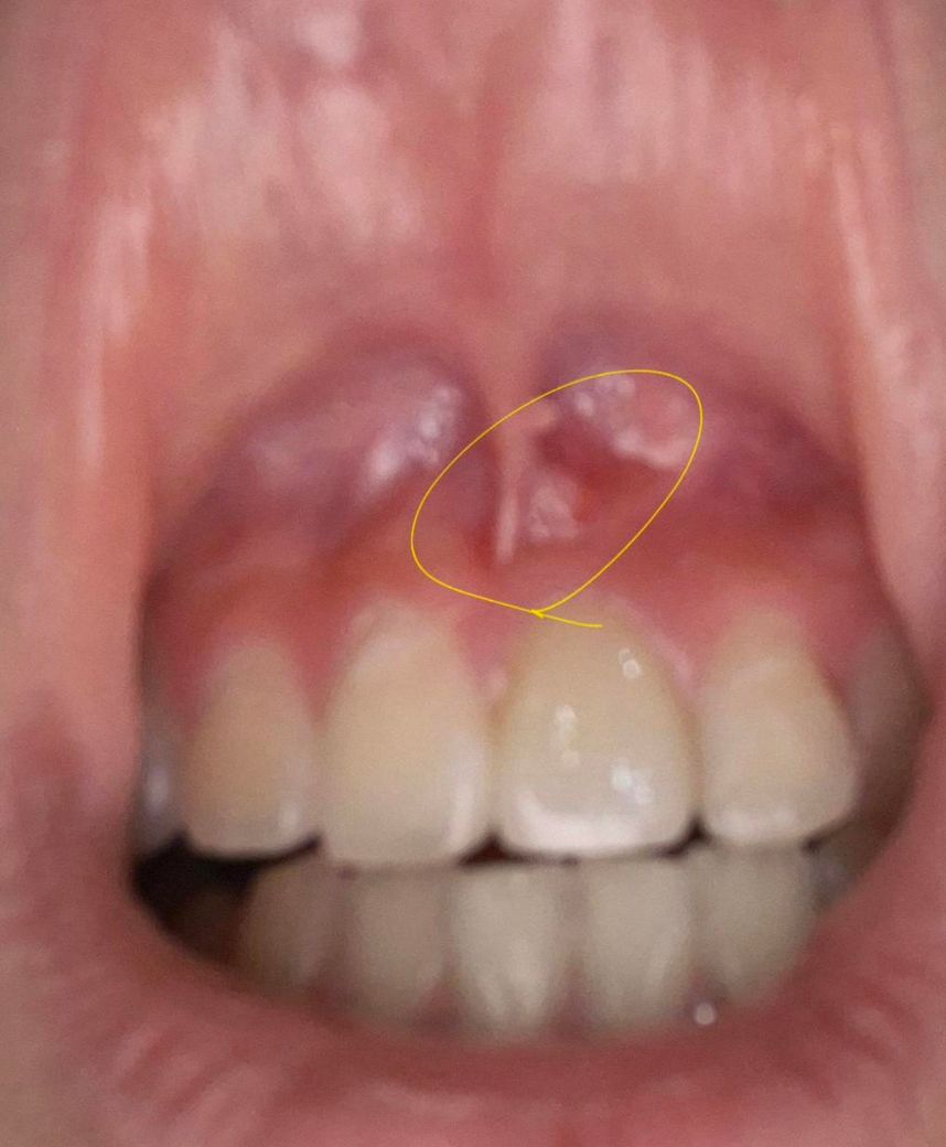 사진으로 봤을 때는 근단치주염일 가능성이 높습니다. 치아 내부에 신경이 감염이 되면 뿌리 쪽의 염증을 형성하게 되는데 이런 염증이 외부로 드러나게 되면서 사진과 같이 고름이 찰 수 있습니다. 이런 경우 재신경치료나 치근단 말이 절제 설정이 필요할 수 있습니다.
