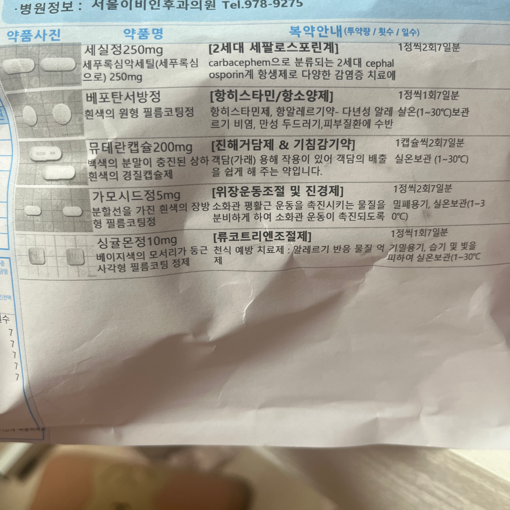 세실정 / 베포탄서방정 / 뮤테란캡슐 / 가모시드정 / 싱귤몬정을 복용하시면서