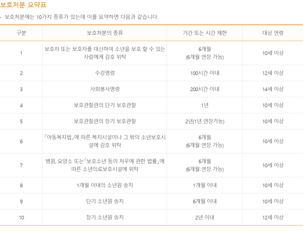 친구가 소년원 보호 처분 6호인가를 받았다고 들었는데 1에서 10호까지 있다고 하더라구요.